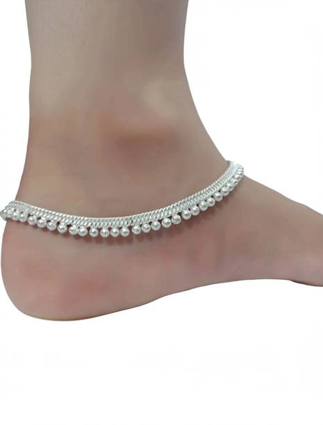 10.2-inch, 32gms silver-plated white metal anklet, elegant and versatile for casual, festive, or wedding wear.