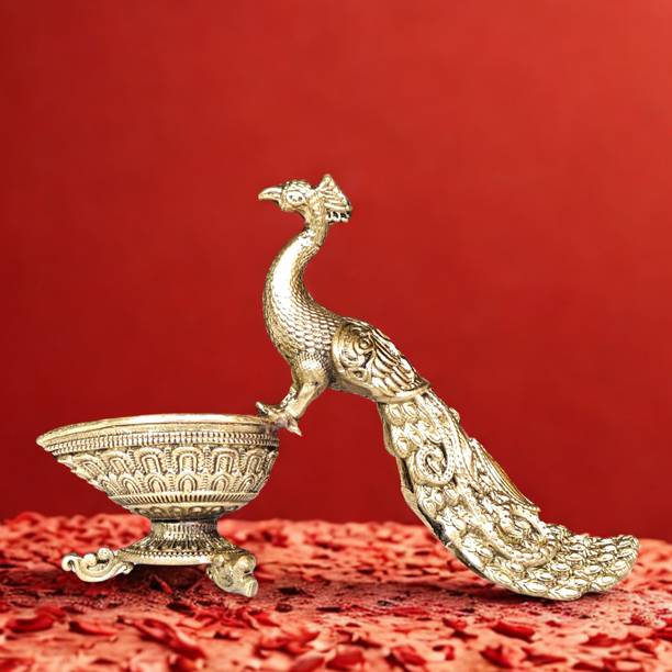 Craftcart Peacock Diya Deepak: A decorative diya featuring an artistic peacock design, symbolizing beauty and grace. It combines functionality with aesthetic appeal, making it ideal for festive décor and gifting.