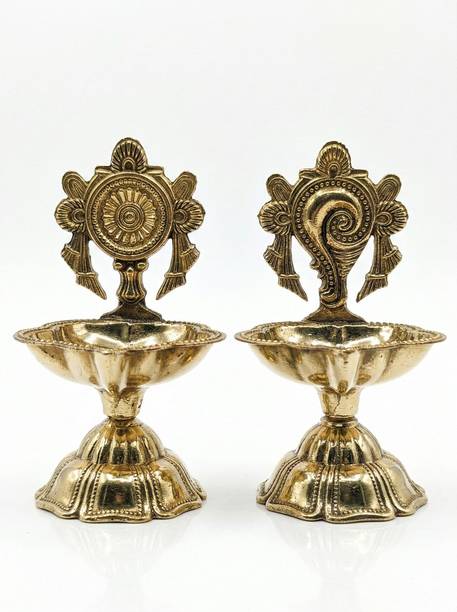 Madhura eStores OM VEL Diya: A spiritually inspired diya featuring OM and Vel symbols, designed to enhance devotional ambiance and traditional aesthetics.